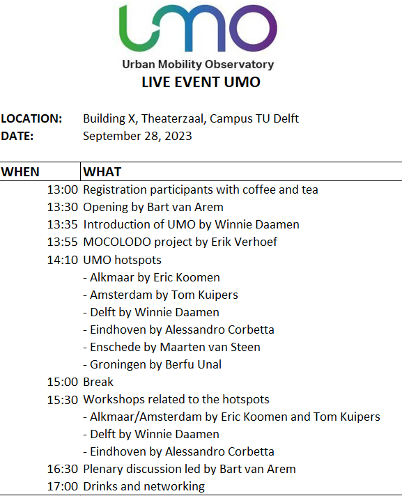 The programme of our UMO live event on September 28th in Delft has now been finalised.